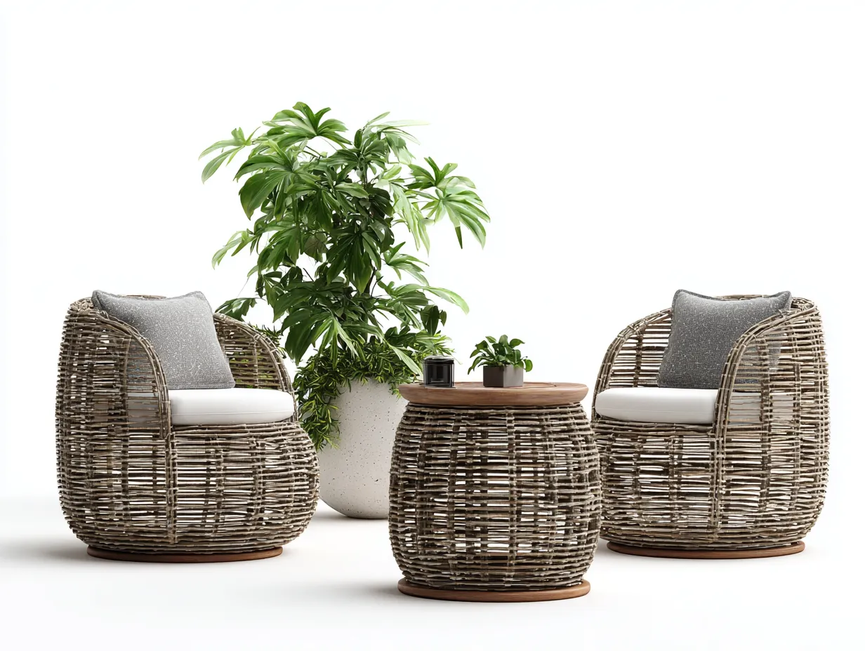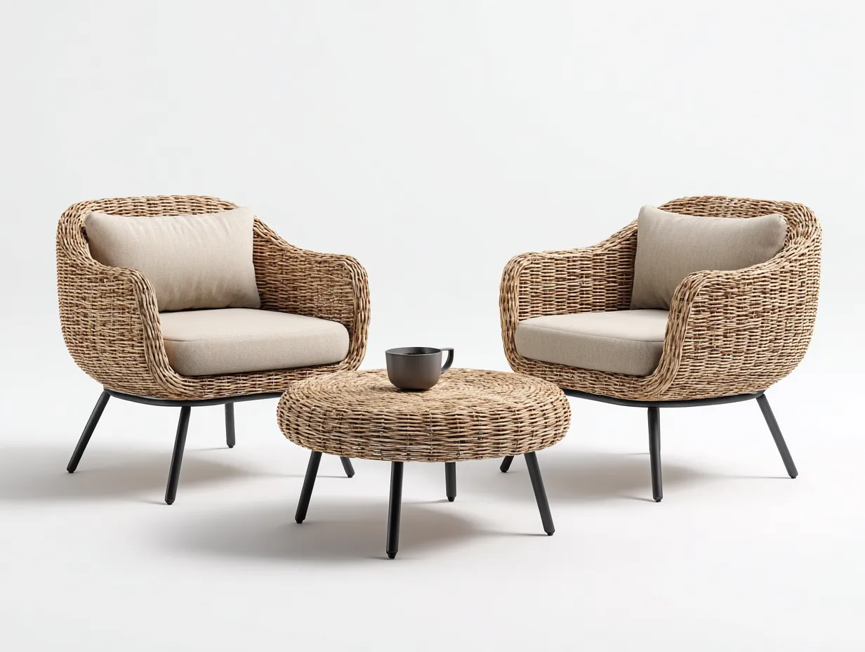 Set salotto da terrazza-rattan-legno-82x80x74 cm 58x58x46 cm-naturale-design contemporaneo