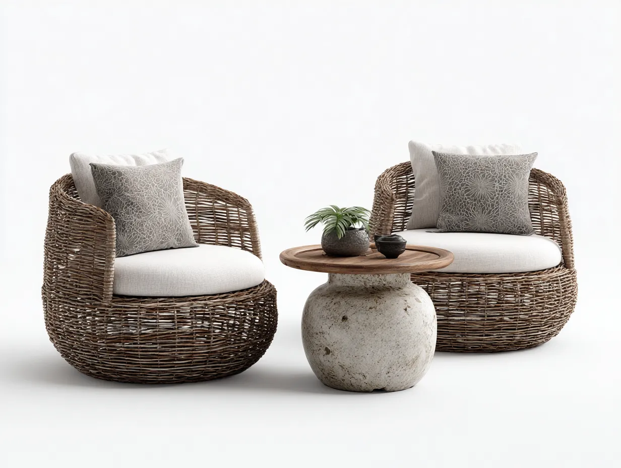 Set salotto da terrazza-rattan-legno-pietra-84x80x72 cm 50x50x48 cm-naturale-design contemporaneo