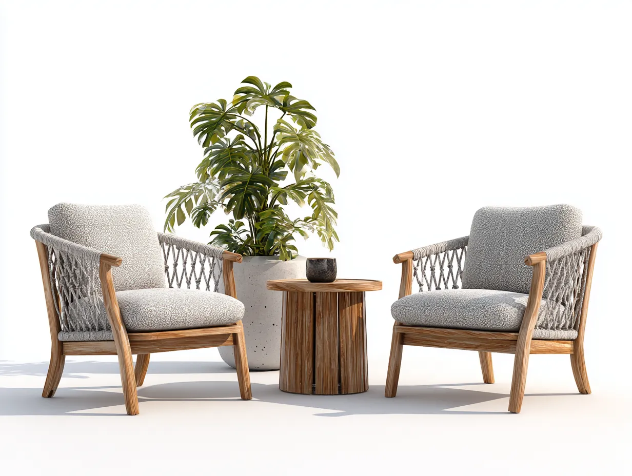 Set salotto da terrazza-legno-corda-78x76x74 cm 42x42x48 cm-naturale-design moderno
