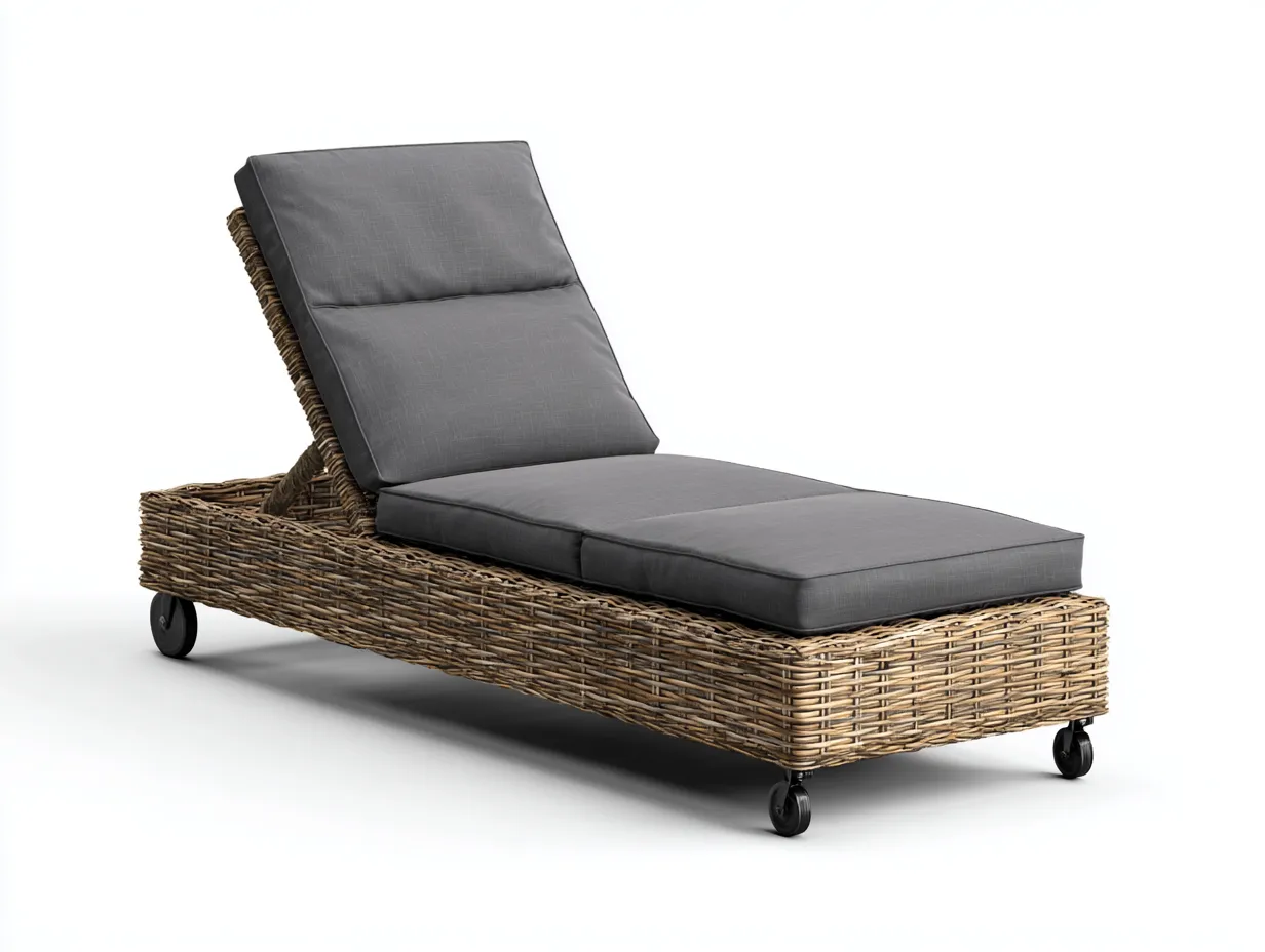 Lettino prendisole da esterno ideale per giardino terrazza e area piscina. La struttura in rattan intrecciato con seduta imbottita offre comfort e praticità per momenti di relax all aperto mantenendo uno stile naturale e ordinato.