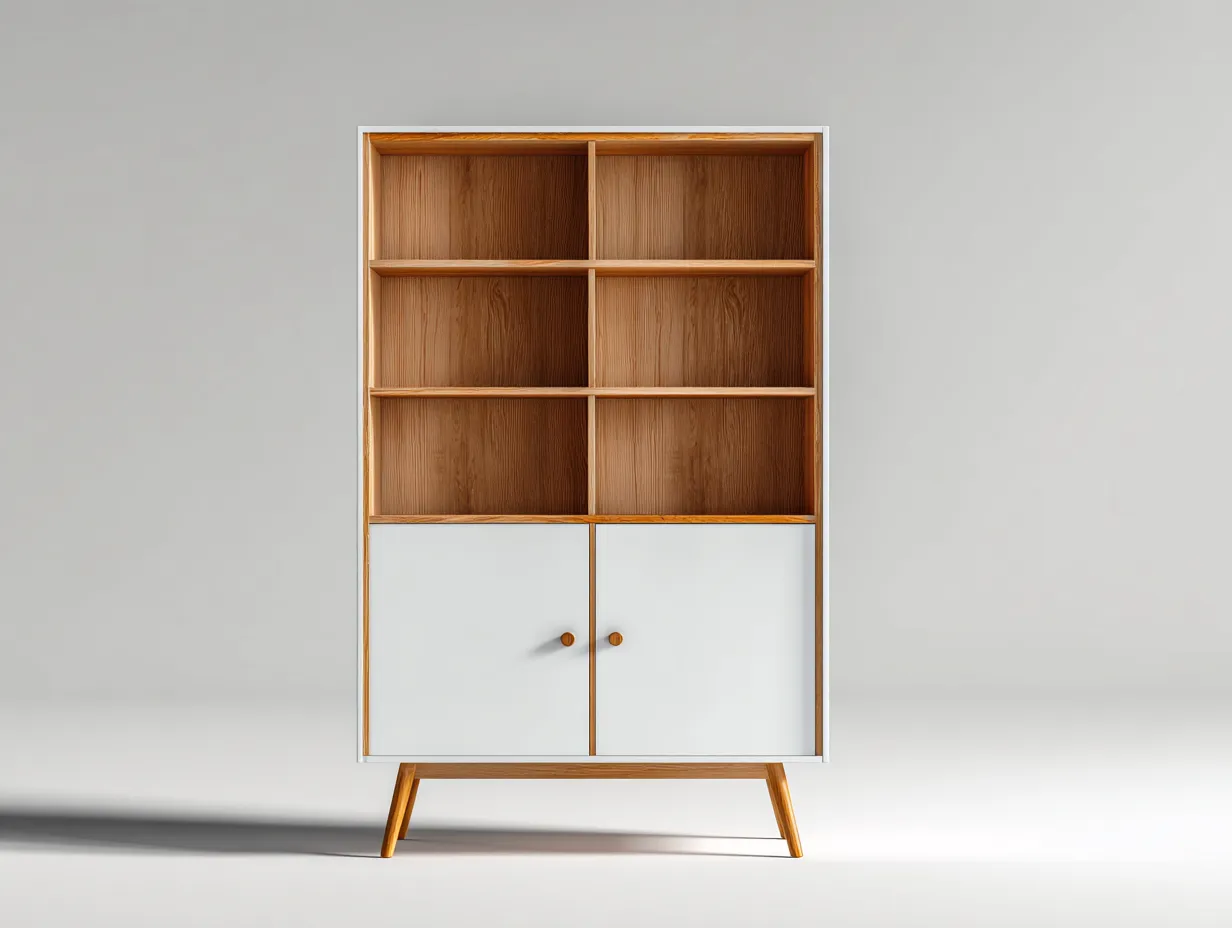 Vetrina dal design moderno progettata per organizzare e valorizzare oggetti decorativi, libri e accessori per la casa. La struttura verticale contribuisce a un utilizzo efficiente dello spazio ed è adatta a soggiorno, studio o zona pranzo.